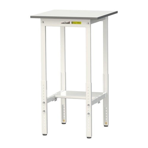 軽量作業台/耐荷重150kg 高さ調整式 半面棚付 低圧メラミン天板 ワークテーブル150 W600D600H900−1200mm SUPAH−660T−WW ホワイト 1台【メーカー直送】
