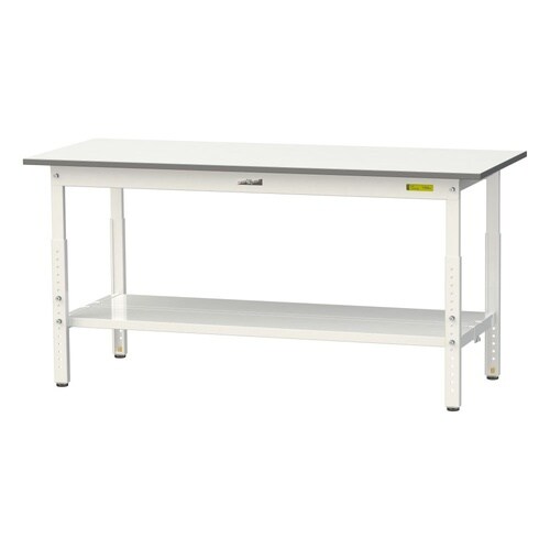 軽量作業台/耐荷重150kg 高さ調整式 全面棚付 低圧メラミン天板 ワークテーブル150 W1500D600H600−900mm SUPA−1560TT−WW ホワイト 1台【メーカー直送】