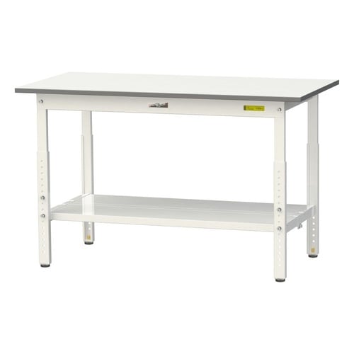 軽量作業台/耐荷重150kg 高さ調整式 全面棚付 低圧メラミン天板 ワークテーブル150 W1200D600H600−900mm SUPA−1260TT−WW ホワイト 1台【メーカー直送】