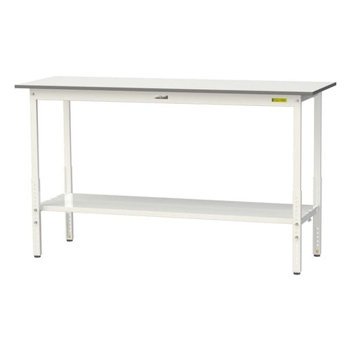 軽量作業台/耐荷重150kg 高さ調整式 全面棚付 低圧メラミン天板 ワークテーブル150 W1800D600H900−1200mm SUPAH−1860TT−WW ホワイト 1台【メーカー直送】