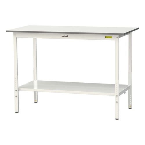軽量作業台/耐荷重150kg 高さ調整式 全面棚付 低圧メラミン天板 ワークテーブル150 W1500D750H900−1200mm SUPAH−1575TT−WW ホワイト 1台【メーカー直送】