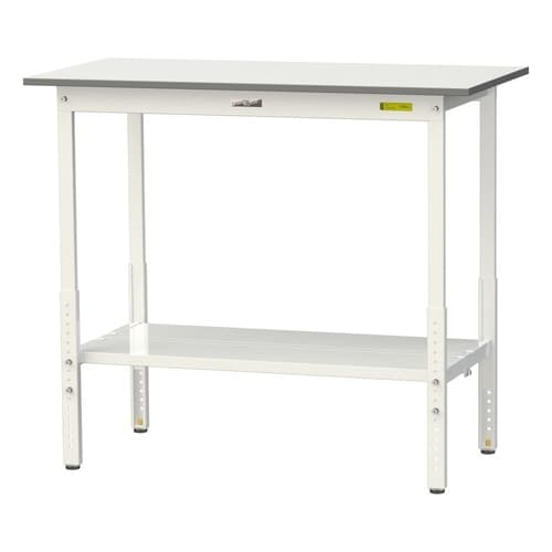 軽量作業台/耐荷重150kg 高さ調整式 全面棚付 低圧メラミン天板 ワークテーブル150 W1200D600H900−1200mm SUPAH−1260TT−WW ホワイト 1台【メーカー直送】