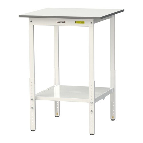 軽量作業台/耐荷重150kg 高さ調整式 全面棚付 低圧メラミン天板 ワークテーブル150 W750D750H900−1200mm SUPAH−775TT−WW ホワイト 1台【メーカー直送】