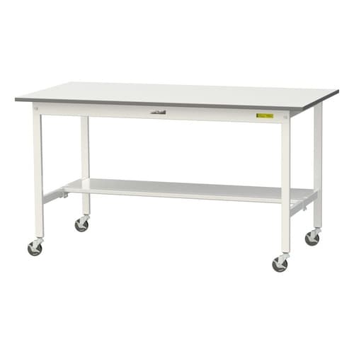 軽量作業台/耐荷重128kg 移動式 半面棚付 低圧メラミン天板 ワークテーブル150 W1500D750H825mm SUPC−1575T−WW ホワイト 1台【メーカー直送】