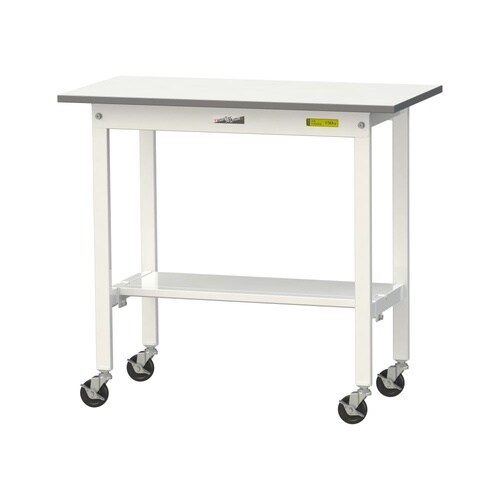 軽量作業台/耐荷重128kg 移動式 半面棚付 低圧メラミン天板 ワークテーブル150 W900D450H825mm SUPC−945T−WW ホワイト 1台【メーカー直送】