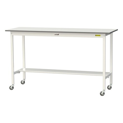 軽量作業台/耐荷重128kg 移動式 半面棚付 低圧メラミン天板 ワークテーブル150 W1800D600H1035mm SUPHC−1860T−WW ホワイト 1台【メーカー直送】