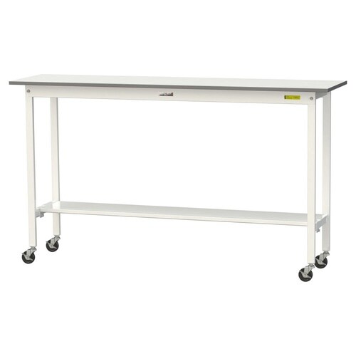 軽量作業台/耐荷重128kg 移動式 半面棚付 低圧メラミン天板 ワークテーブル150 W1800D450H1035mm SUPHC−1845T−WW ホワイト 1台【メーカー直送】