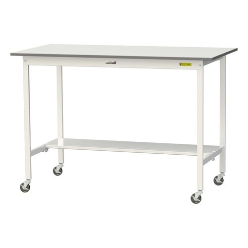 軽量作業台/耐荷重128kg 移動式 半面棚付 低圧メラミン天板 ワークテーブル150 W1500D750H1035mm SUPHC−1575T−WW ホワイト 1台【メーカー直送】