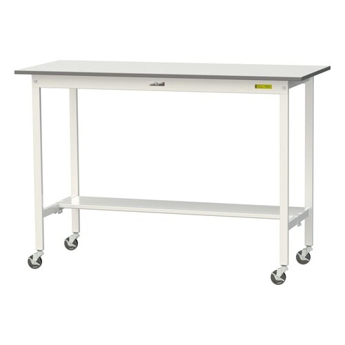 軽量作業台/耐荷重128kg 移動式 半面棚付 低圧メラミン天板 ワークテーブル150 W1500D600H1035mm SUPHC−1560T−WW ホワイト 1台【メーカー直送】