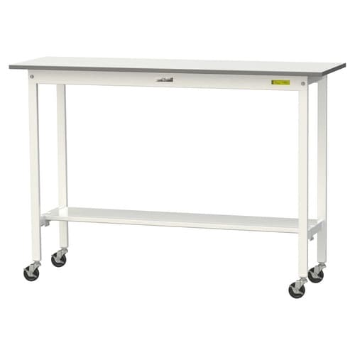 軽量作業台/耐荷重128kg 移動式 半面棚付 低圧メラミン天板 ワークテーブル150 W1500D450H1035mm SUPHC−1545T−WW ホワイト 1台【メーカー直送】