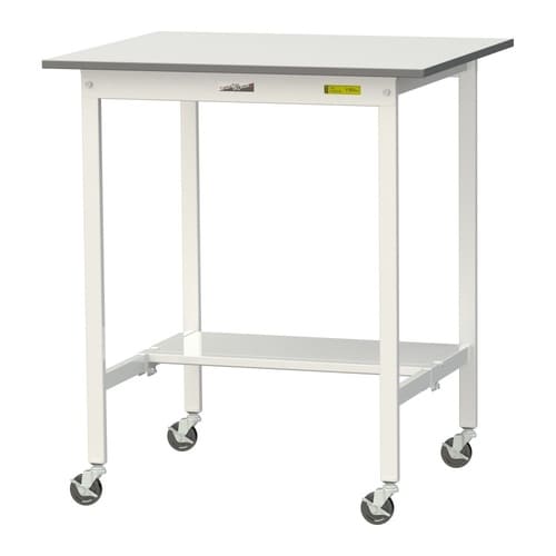 軽量作業台/耐荷重128kg 移動式 半面棚付 低圧メラミン天板 ワークテーブル150 W900D750H1035mm SUPHC−975T−WW ホワイト 1台【メーカー直送】