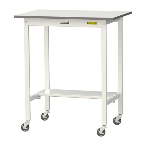 軽量作業台/耐荷重128kg 移動式 半面棚付 低圧メラミン天板 ワークテーブル150 W900D600H1035mm SUPHC−960T−WW ホワイト 1台【メーカー直送】