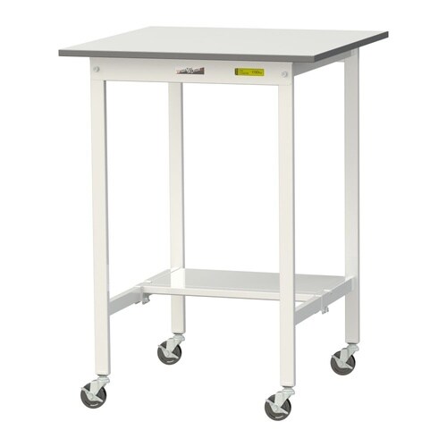 軽量作業台/耐荷重128kg 移動式 半面棚付 低圧メラミン天板 ワークテーブル150 W750D750H1035mm SUPHC−775T−WW ホワイト 1台【メーカー直送】