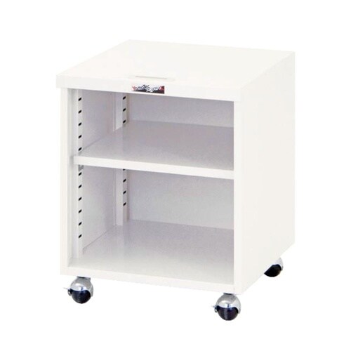 補助テーブルや脇机として使えるキャビネットワゴン。収納物の出し入れがしやすいオープンタイプです。付属の自在棚は30mmピッチで高さ変更が可能で便利です。 |