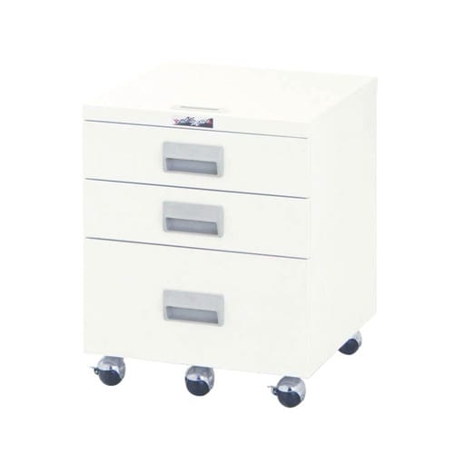 補助テーブルや脇机として使えるキャビネットワゴン。浅型2段、深型1段の合計3段引出し付き。フルオープン引き出しで収納物が出し入れしやすく便利です。 |