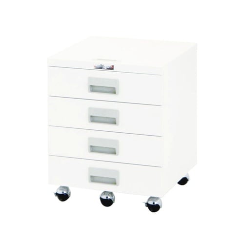 補助テーブルや脇机として使えるキャビネットワゴン。浅型4段の引出し付き。フルオープン引出しで収納物が出し入れしやすく便利です。 |