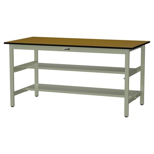 軽量作業台/耐荷重300kg 中間+足元半面棚付 ポリエステル天板 ワークテーブル300 W1800D900H900mm SWPH−1890TS1−MG 天板木目柄脚グリーン 1台【メーカー直送】