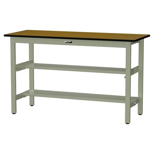 軽量作業台/耐荷重300kg 中間+足元半面棚付 ポリエステル天板 ワークテーブル300 W1500D600H900mm SWPH−1560TS1−MG 天板木目柄脚グリーン 1台【メーカー直送】