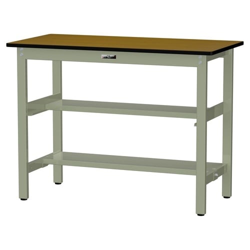 軽量作業台/耐荷重300kg 中間+足元半面棚付 ポリエステル天板 ワークテーブル300 W1200D600H900mm SWPH−1260TS1−MG 天板木目柄脚グリーン 1台【メーカー直送】