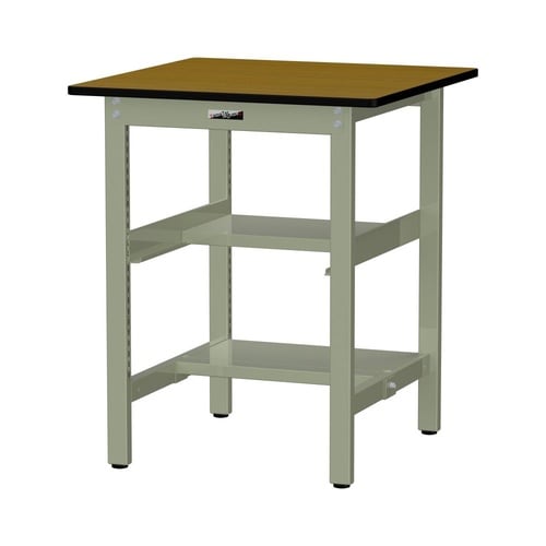 軽量作業台/耐荷重300kg 中間+足元半面棚付 ポリエステル天板 ワークテーブル300 W750D750H900mm SWPH−775TS1−MG 天板木目柄脚グリーン 1台【メーカー直送】