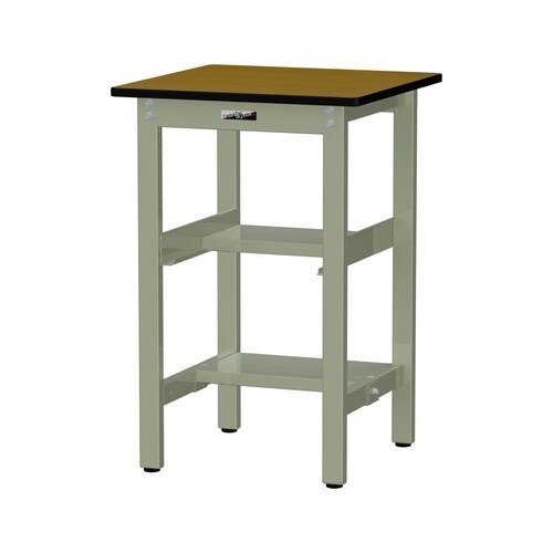 軽量作業台/耐荷重300kg 中間+足元半面棚付 ポリエステル天板 ワークテーブル300 W600D600H900mm SWPH−660TS1−MG 天板木目柄脚グリーン 1台【メーカー直送】