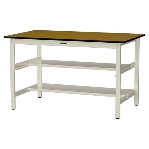 軽量作業台/耐荷重300kg 中間+足元半面棚付 ポリエステル天板 ワークテーブル300 W1500D900H900mm SWPH−1590TS1−MI 天板木目柄脚アイボリー 1台【メーカー直送】