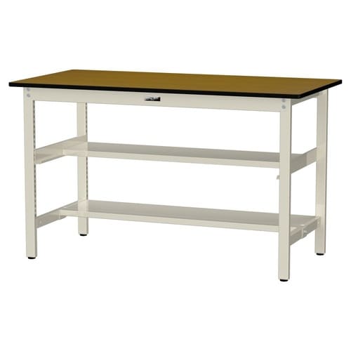 軽量作業台/耐荷重300kg 中間+足元半面棚付 ポリエステル天板 ワークテーブル300 W1500D750H900mm SWPH−1575TS1−MI 天板木目柄脚アイボリー 1台【メーカー直送】