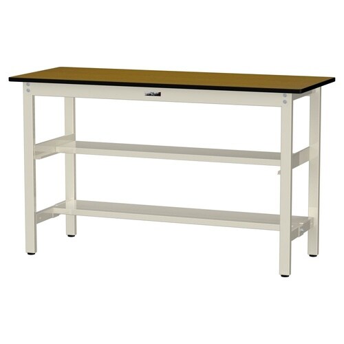軽量作業台/耐荷重300kg 中間+足元半面棚付 ポリエステル天板 ワークテーブル300 W1500D600H900mm SWPH−1560TS1−MI 天板木目柄脚アイボリー 1台【メーカー直送】