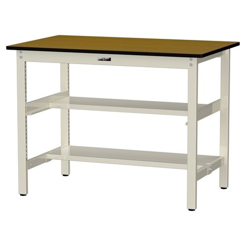 軽量作業台/耐荷重300kg 中間+足元半面棚付 ポリエステル天板 ワークテーブル300 W1200D750H900mm SWPH−1275TS1−MI 天板木目柄脚アイボリー 1台【メーカー直送】