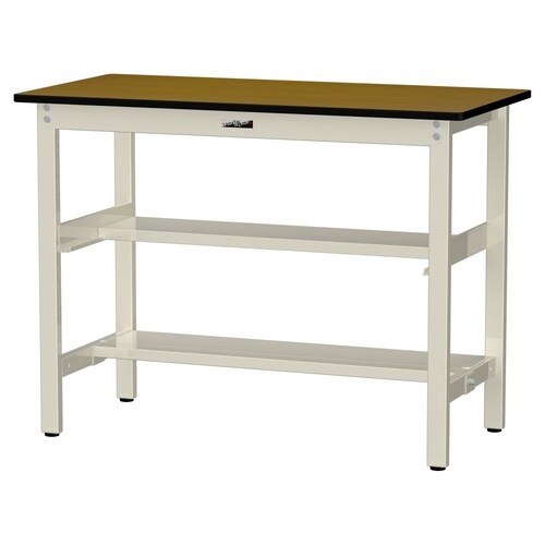 軽量作業台/耐荷重300kg 中間+足元半面棚付 ポリエステル天板 ワークテーブル300 W1200D600H900mm SWPH−1260TS1−MI 天板木目柄脚アイボリー 1台【メーカー直送】