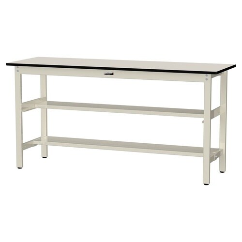 軽量作業台/耐荷重300kg 中間+足元半面棚付 ポリエステル天板 ワークテーブル300 W1800D600H900mm SWPH−1860TS1−II アイボリー 1台【メーカー直送】