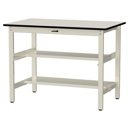 軽量作業台/耐荷重300kg 中間+足元半面棚付 ポリエステル天板 ワークテーブル300 W1200D750H900mm SWPH−1275TS1−II アイボリー 1台【メーカー直送】