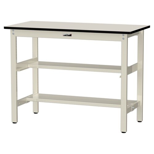 軽量作業台/耐荷重300kg 中間+足元半面棚付 ポリエステル天板 ワークテーブル300 W1200D600H900mm SWPH−1260TS1−II アイボリー 1台【メーカー直送】