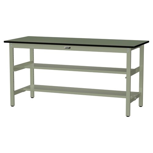 軽量作業台/耐荷重300kg 中間+足元半面棚付 塩ビシート天板 ワークテーブル300 W1800D750H900mm SWRH−1875TS1−GG グリーン 1台【メーカー直送】
