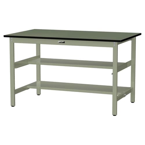 軽量作業台/耐荷重300kg 中間+足元半面棚付 塩ビシート天板 ワークテーブル300 W1500D900H900mm SWRH−1590TS1−GG グリーン 1台【メーカー直送】