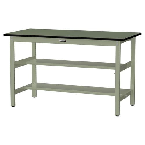 軽量作業台/耐荷重300kg 中間+足元半面棚付 塩ビシート天板 ワークテーブル300 W1500D750H900mm SWRH−1575TS1−GG グリーン 1台【メーカー直送】