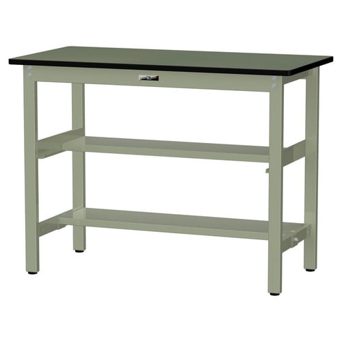 軽量作業台/耐荷重300kg 中間+足元半面棚付 塩ビシート天板 ワークテーブル300 W1200D600H900mm SWRH−1260TS1−GG グリーン 1台【メーカー直送】