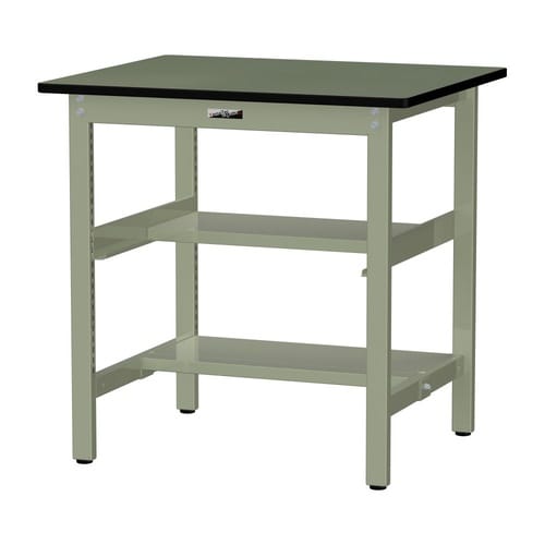 軽量作業台/耐荷重300kg 中間+足元半面棚付 塩ビシート天板 ワークテーブル300 W900D750H900mm SWRH−975TS1−GG グリーン 1台【メーカー直送】