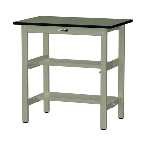 軽量作業台/耐荷重300kg 中間+足元半面棚付 塩ビシート天板 ワークテーブル300 W900D600H900mm SWRH−960TS1−GG グリーン 1台【メーカー直送】