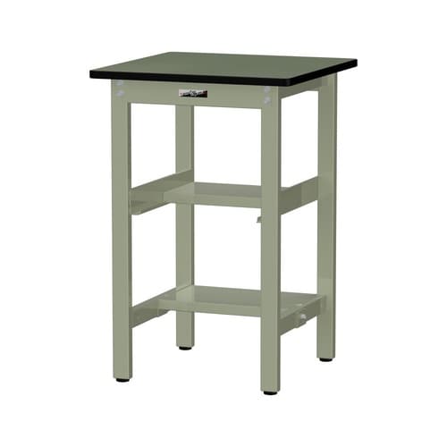 軽量作業台/耐荷重300kg 中間+足元半面棚付 塩ビシート天板 ワークテーブル300 W600D600H900mm SWRH−660TS1−GG グリーン 1台【メーカー直送】