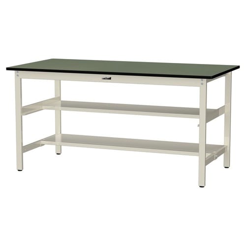軽量作業台/耐荷重300kg 中間+足元半面棚付 塩ビシート天板 ワークテーブル300 W1800D900H900mm SWRH−1890TS1−GI 天板グリーン脚アイボリー 1台【メーカー直送】