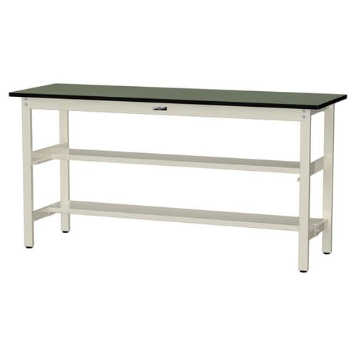 軽量作業台/耐荷重300kg 中間+足元半面棚付 塩ビシート天板 ワークテーブル300 W1800D600H900mm SWRH−1860TS1−GI 天板グリーン脚アイボリー 1台【メーカー直送】