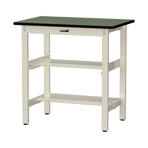 軽量作業台/耐荷重300kg 中間+足元半面棚付 塩ビシート天板 ワークテーブル300 W900D600H900mm SWRH−960TS1−GI 天板グリーン脚アイボリー 1台【メーカー直送】