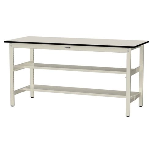 軽量作業台/耐荷重300kg 中間+足元半面棚付 塩ビシート天板 ワークテーブル300 W1800D750H900mm SWRH−1875TS1−II アイボリー 1台【メーカー直送】