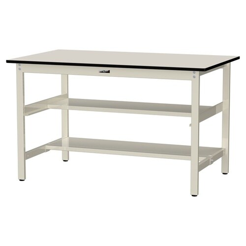 軽量作業台/耐荷重300kg 中間+足元半面棚付 塩ビシート天板 ワークテーブル300 W1500D900H900mm SWRH−1590TS1−II アイボリー 1台【メーカー直送】
