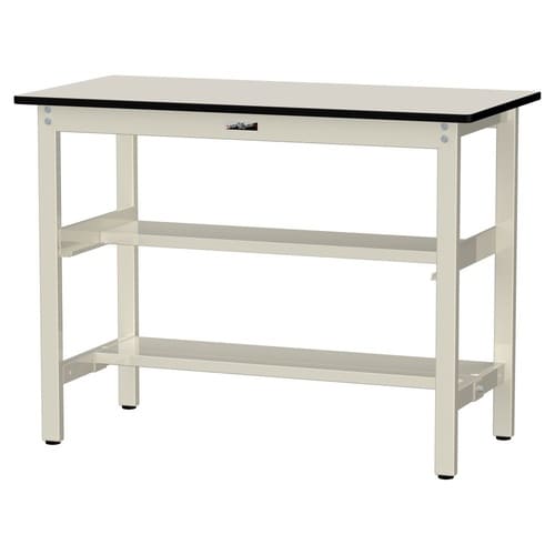 軽量作業台/耐荷重300kg 中間+足元半面棚付 塩ビシート天板 ワークテーブル300 W1200D600H900mm SWRH−1260TS1−II アイボリー 1台【メーカー直送】