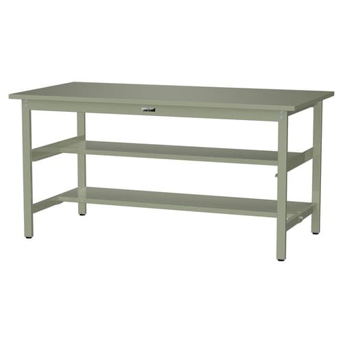軽量作業台/耐荷重300kg 中間+足元半面棚付 スチール天板 ワークテーブル300 W1800D900H900mm SWSH−1890TS1−GG グリーン 1台【メーカー直送】