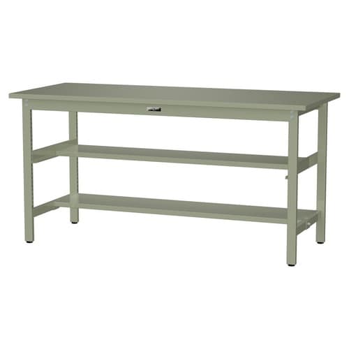 軽量作業台/耐荷重300kg 中間+足元半面棚付 スチール天板 ワークテーブル300 W1800D750H900mm SWSH−1875TS1−GG グリーン 1台【メーカー直送】