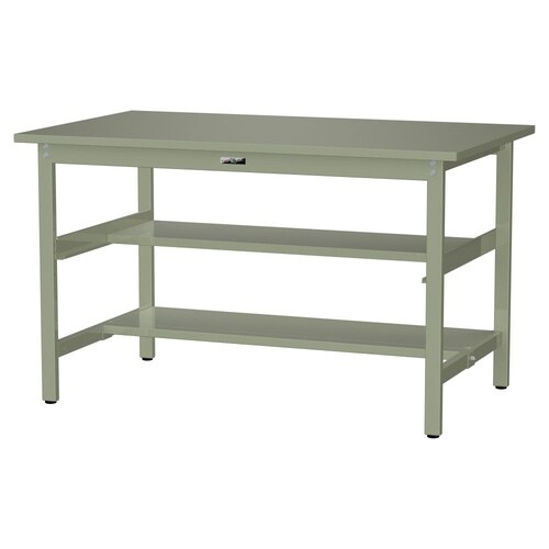軽量作業台/耐荷重300kg 中間+足元半面棚付 スチール天板 ワークテーブル300 W1500D900H900mm SWSH−1590TS1−GG グリーン 1台【メーカー直送】