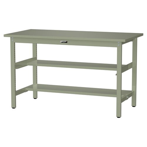 軽量作業台/耐荷重300kg 中間+足元半面棚付 スチール天板 ワークテーブル300 W1500D750H900mm SWSH−1575TS1−GG グリーン 1台【メーカー直送】